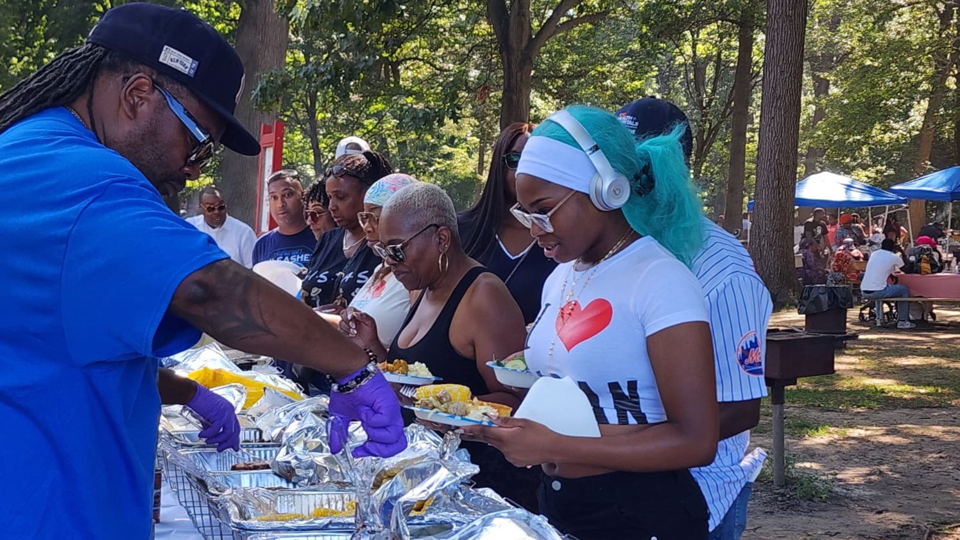 National Night Out is an annual community event at Denton Green Park, hosted in partnership with the Village of Hempstead, that brings residents, police, and local vendors together for food, school supplies, giveaways, voter registration, and family-friendly activities that promote unity, trust, and community connection.